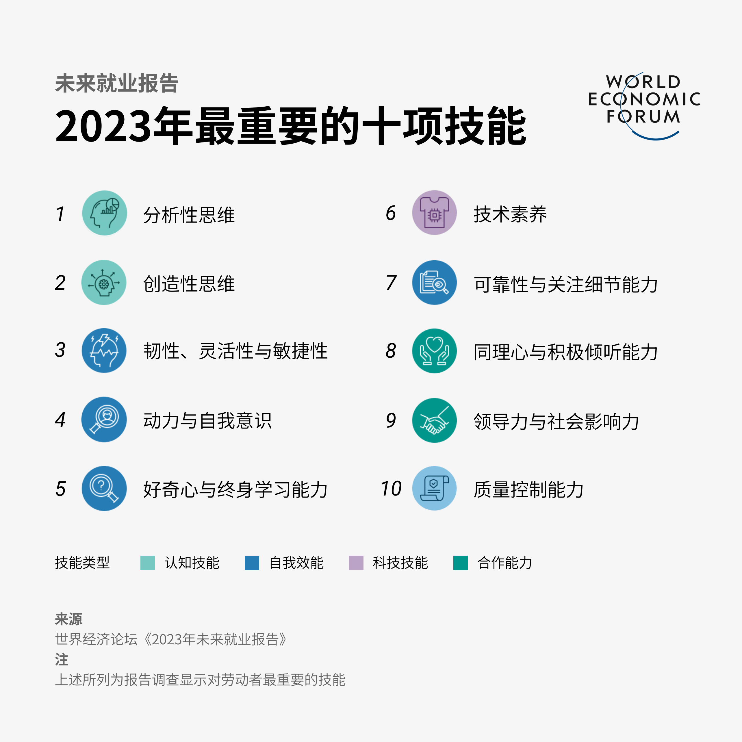 在2023年最重要的技能当中,认知类技能位居榜首。