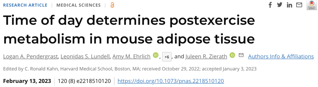 [1]Pendergrast, Logan A. et al, Time of day determines postexercise metabolism in mouse adipose tissue, Proceedings of the National Academy of Sciences (2023). DOI: 10.1073/pnas.2218510120. doi.org/10.1073/pnas.2218510120
