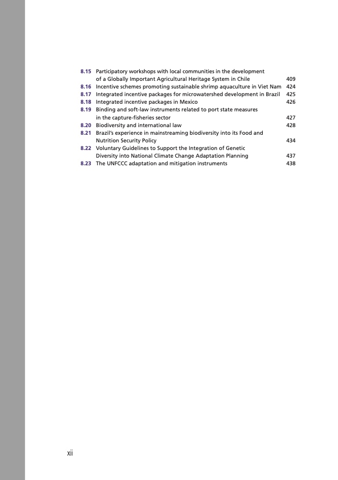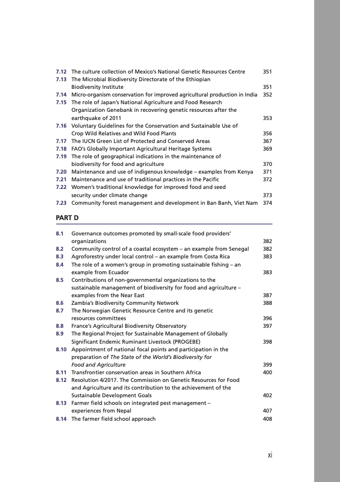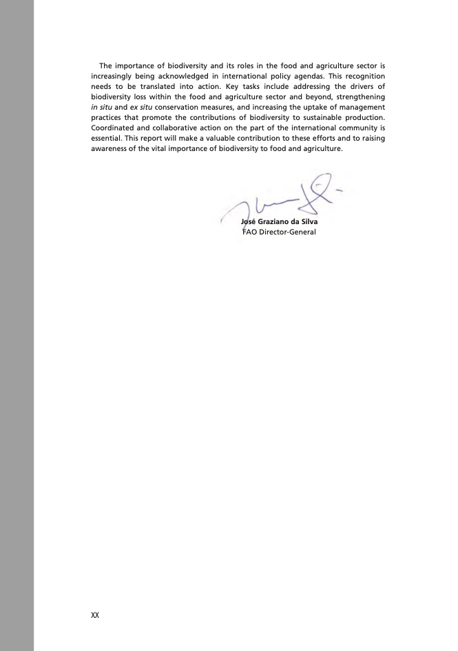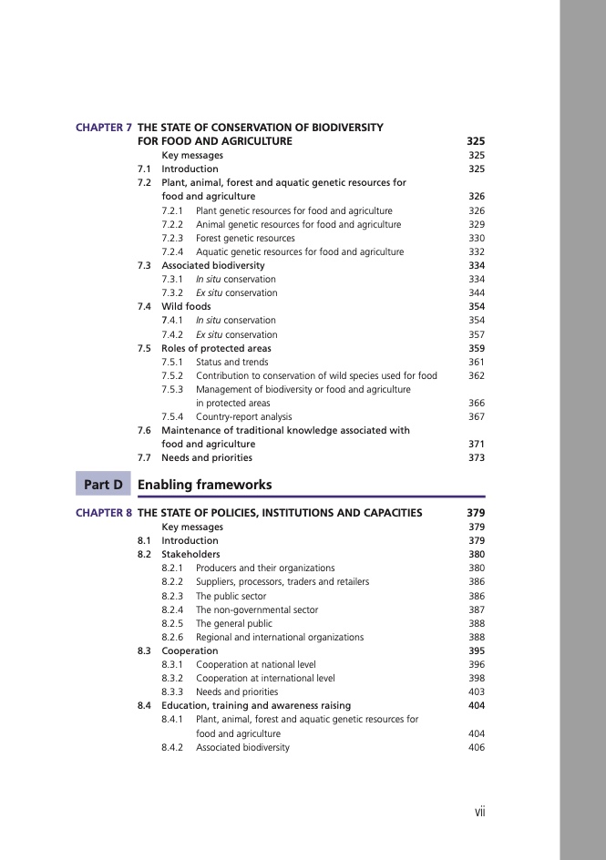 • 支持粮食和农业生物多样性保护与可持续利用的政策、制度和能力状况;