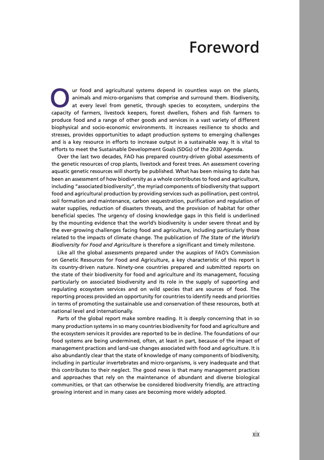 • 粮食和农业生物多样性的管理情况;