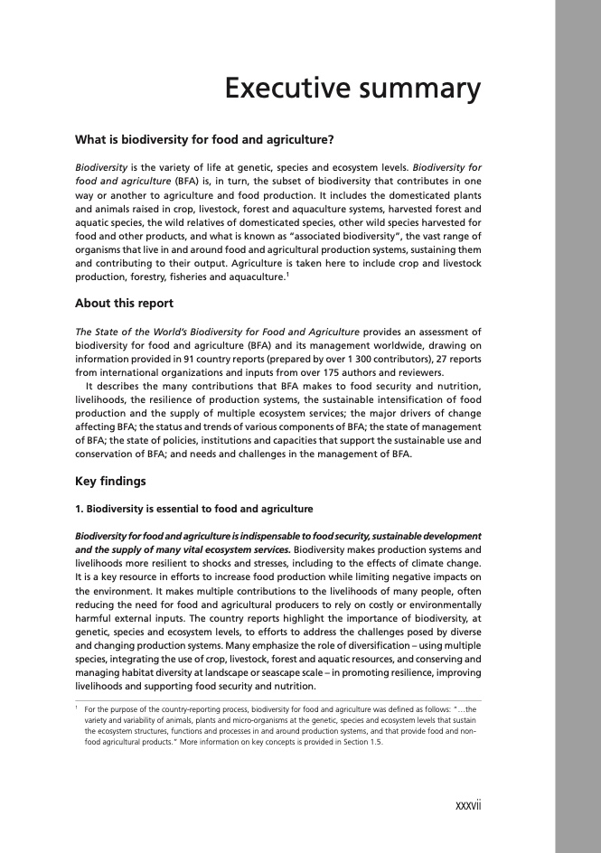 《世界粮食和农业生物多样性状况》参考了91份国别报告(由1300多人编写)、27份国际组织报告,以及175位作者和审查人员提出的意见,对全球范围粮食和农业生物多样性及其管理情况开展了评估。报告描述了: