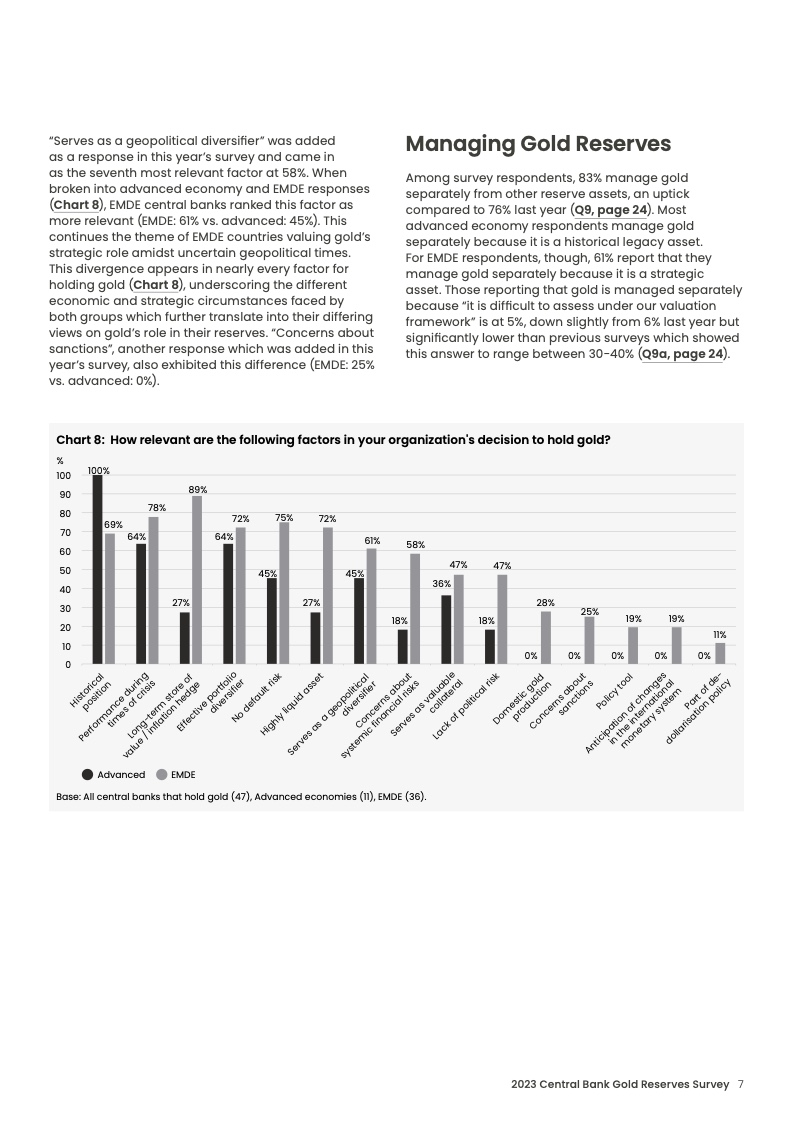 在2月7日至4月7日期间,世界黄金协会对59家央行进行的调查显示,和去年一样,地缘政治担忧、利率担忧和通胀压力上升,仍然是央行看好黄金的主要原因。