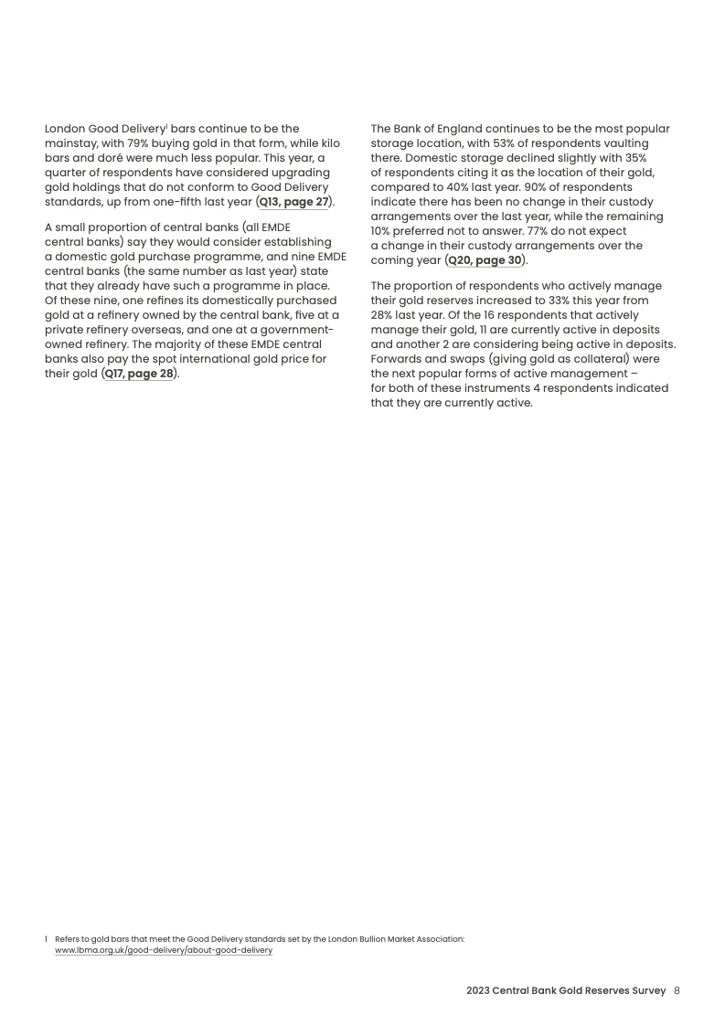 总体而言,央行对黄金的看法仍然非常乐观,而新兴经济体的央行更热衷于增加黄金储备。71%的受访央行预计,央行今年的总体黄金持有量将增加,而去年这一比例为61%。