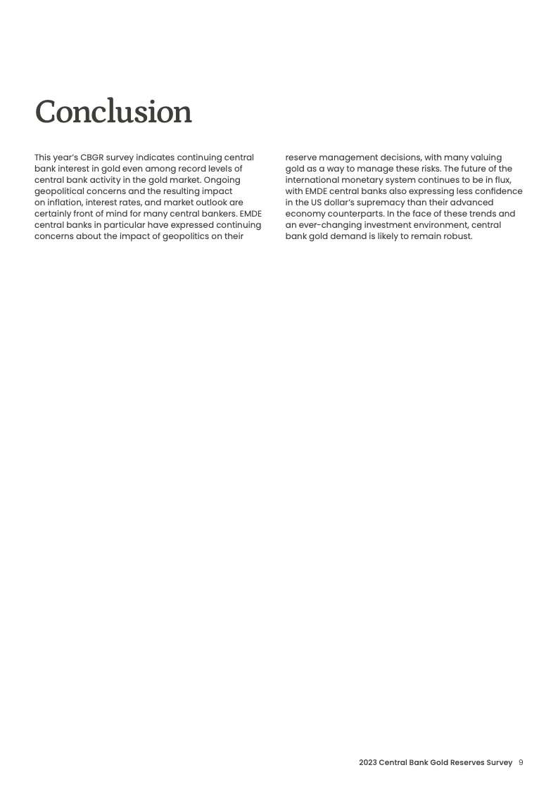 报告显示,在央行黄金购买量达到历史高位之后,有24%的央行计划在2023年增加黄金持有量。与此同时,央行对美元的看法比之前的调查更为悲观。