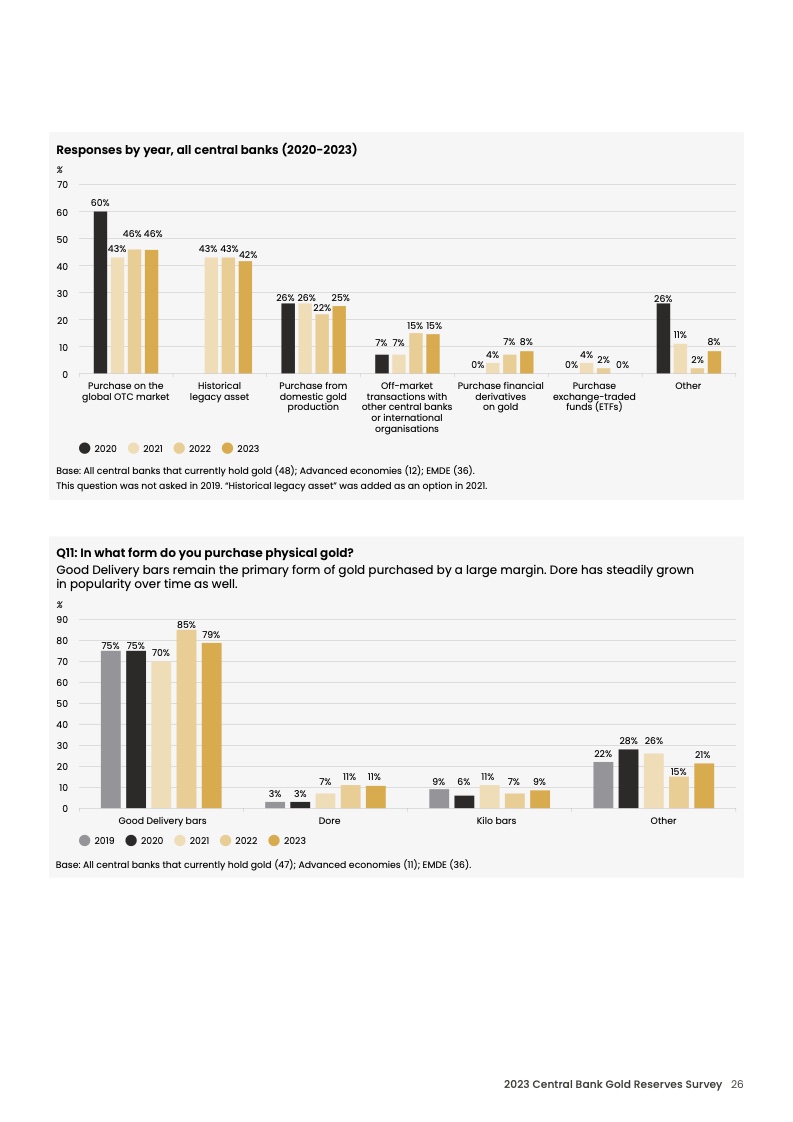 一小部分新兴市场央行甚至表示,他们认为黄金在外汇储备中所占的比例将超过25%,这与去年的结果相比是一个重大的转变,去年没有受访者表示会这样做。