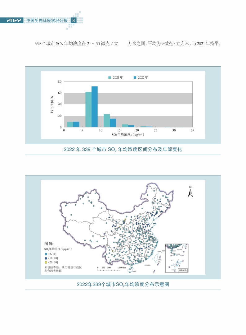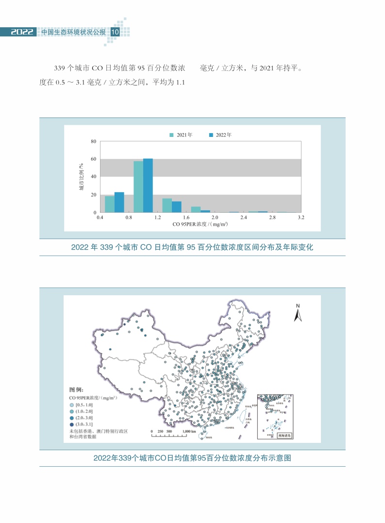 《公报》指出,2022年,全国339个地级及以上城市中,213个城市空气质量达标,占62.8%;126个城市环境空气质量超标,占37.2%。
