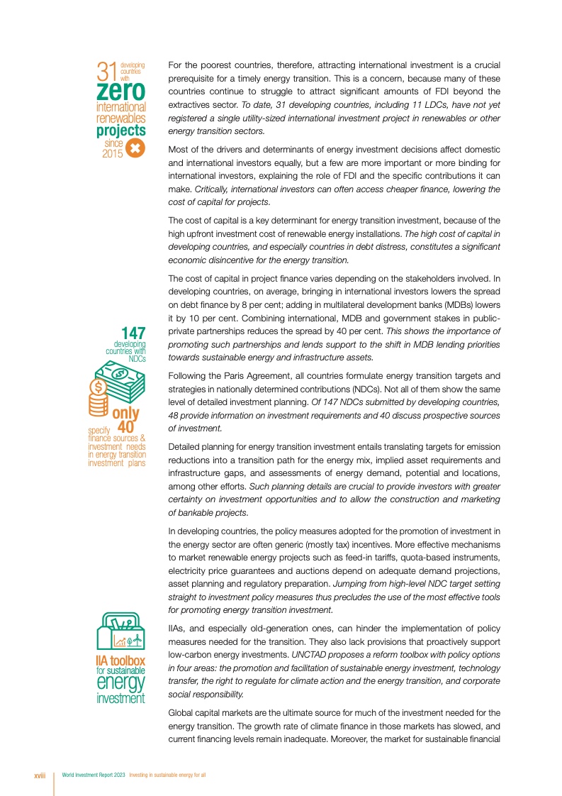 贸发会议认为,这可以为发展中国家提供财政空间,从而为清洁能源过渡做出必要的投资,并通过降低国家风险评级帮助其吸引国际私人投资。