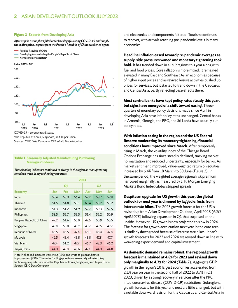 中国经济预计将在今年增长5.0%。由于发达经济体货币紧缩的影响,其对亚洲发展中经济体电子产品及其他制成品出口的需求正在放缓,亚行将对中国的增长预测从4.8%微调至4.7%。