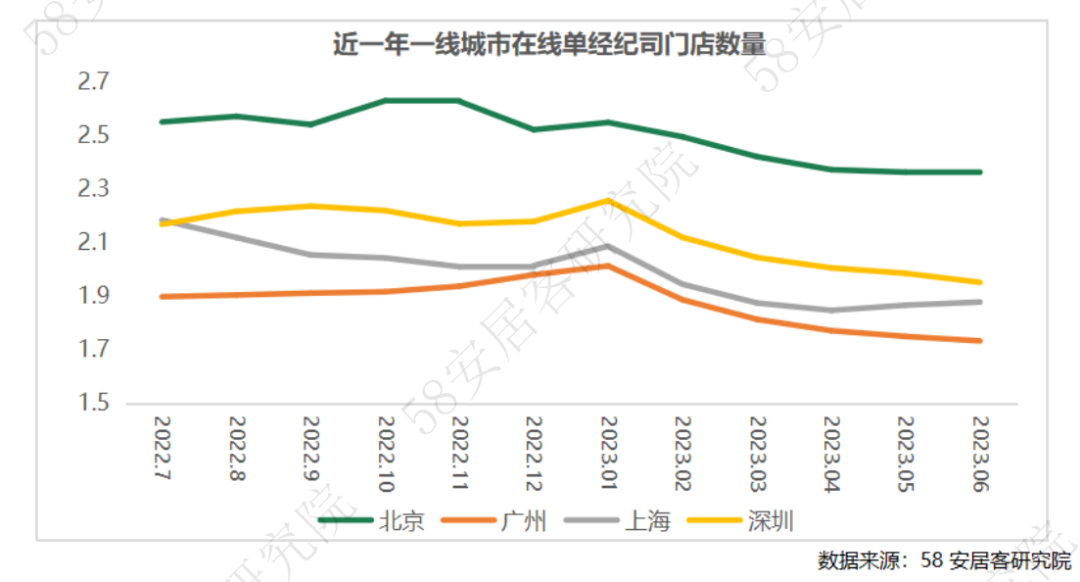(2) 一线城市经纪门店数量变化