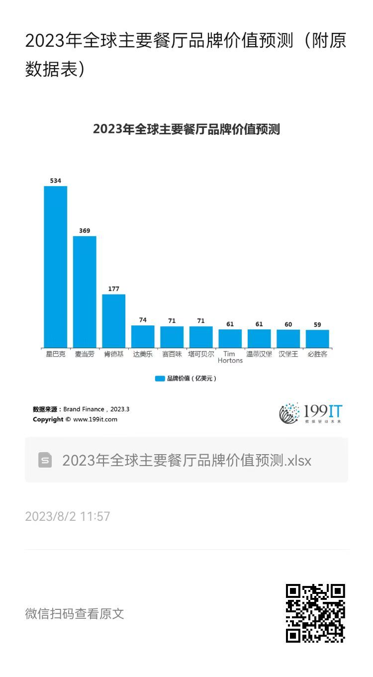 2023年全球主要餐厅品牌价值预测(附原数据表) ​​​