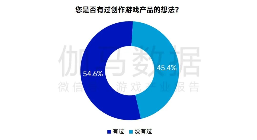 调研显示,半数以上用户有过创作游戏产品的想法,而超4成用户有过创作游戏相关作品的经历。随着AIGC技术的成熟,这意味着越来越多的用户可以便利地加入创作者生态。