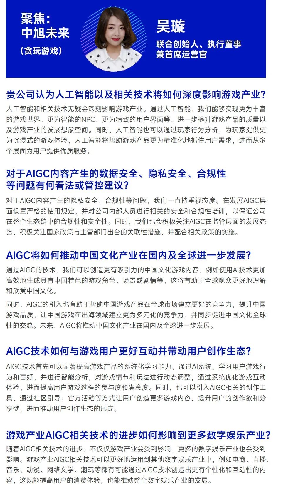 在针对游戏企业的调研过程中显示,企业也关注AIGC的多个发展层面,其中最为关注与自身游戏业务相关的状况,部分企业布局AIGC相关领域已有多年,并积累了自身的突出性优势,甚至凭借AIGC技术构建了自身在研发、营销等多个层面的竞争力,因此报告对其展开重点分析,为更多中国游戏企业布局AIGC领域提供参考。
