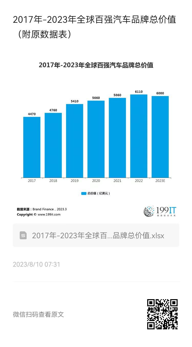 2017年-2023年全球百强汽车品牌总价值(附原数据表) ​​​