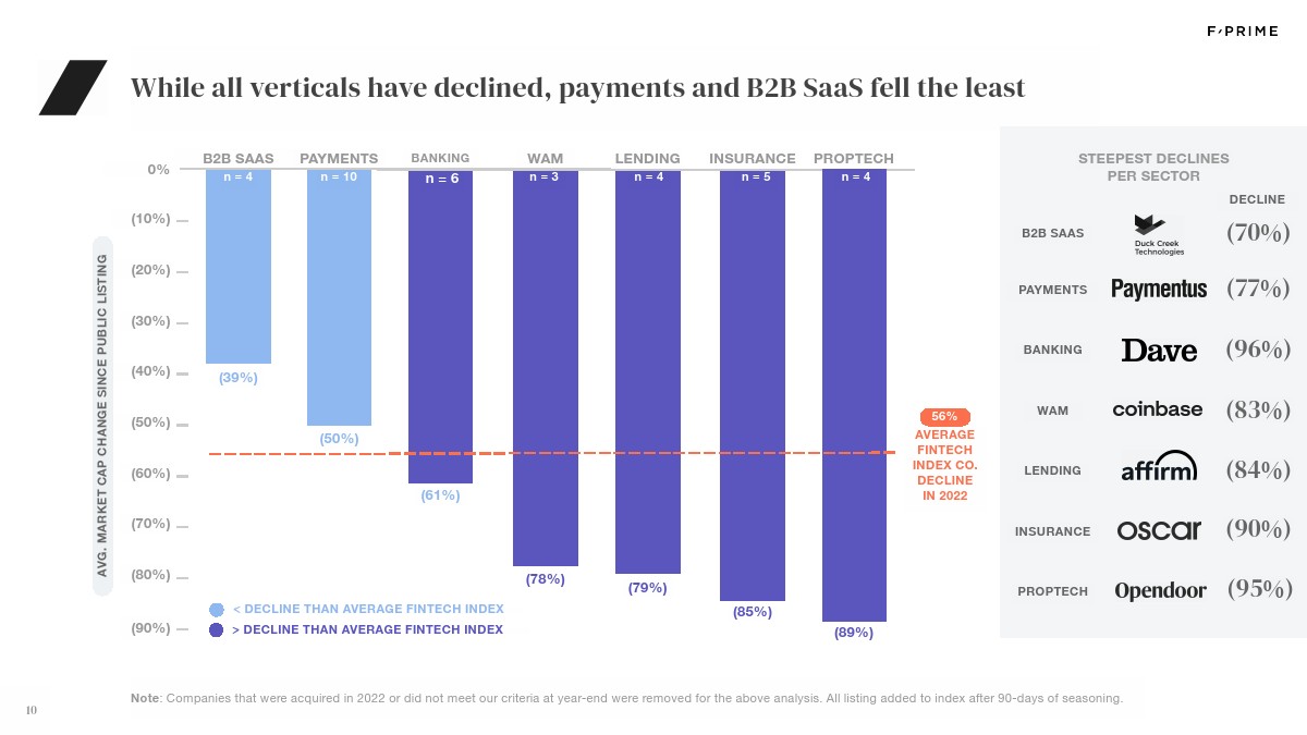 但是,在2022年,公众投资者通过优先考虑资本效率,并将其估值倍数从SaaS转向传统金融服务业务,重新评估了许多金融科技公司。