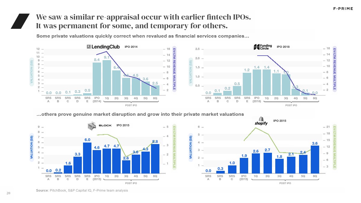 公开市场已经开始将现有金融机构的技术支持版本与真正颠覆性的金融服务方法区分开来。