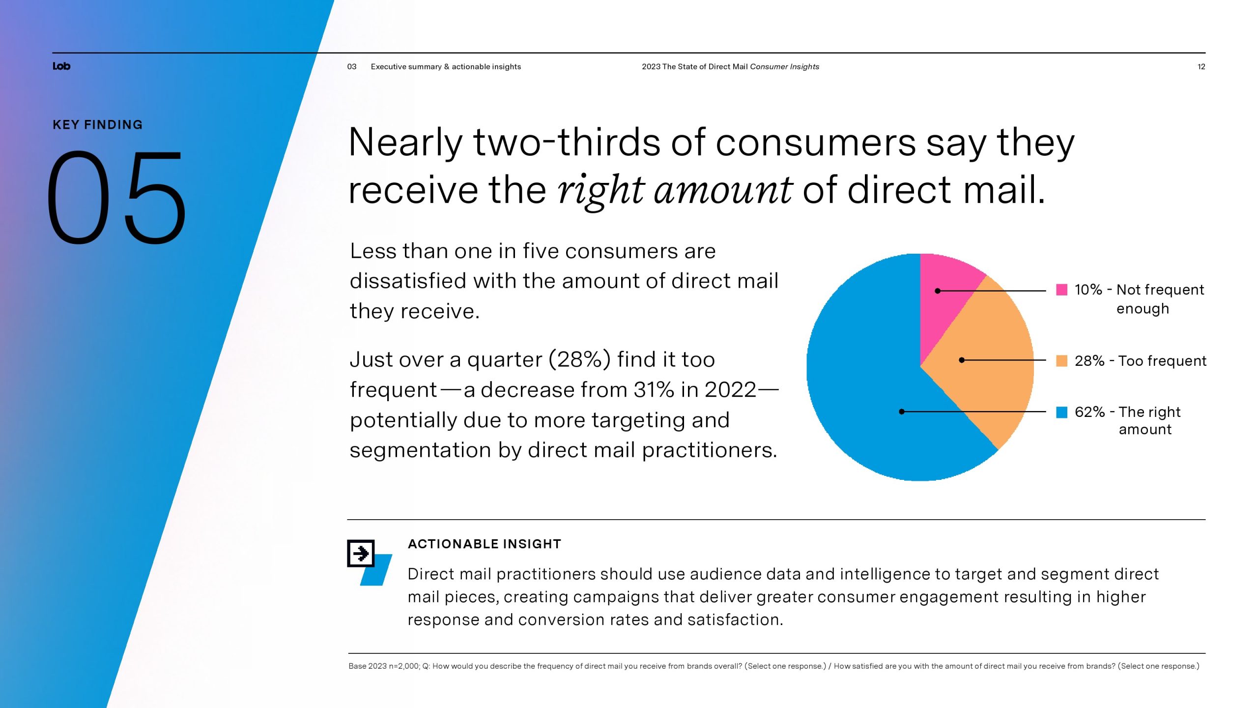 Lob和compermedia再次合作发布了“2023年直邮报告:消费者洞察”。对2000名18岁以上消费者的调查揭示了消费者数据和可操作的见解,以了解他们对直邮的使用、偏好和参与度。这些见解对于帮助企业提高直邮活动的响应、转化率和投资回报率至关重要。