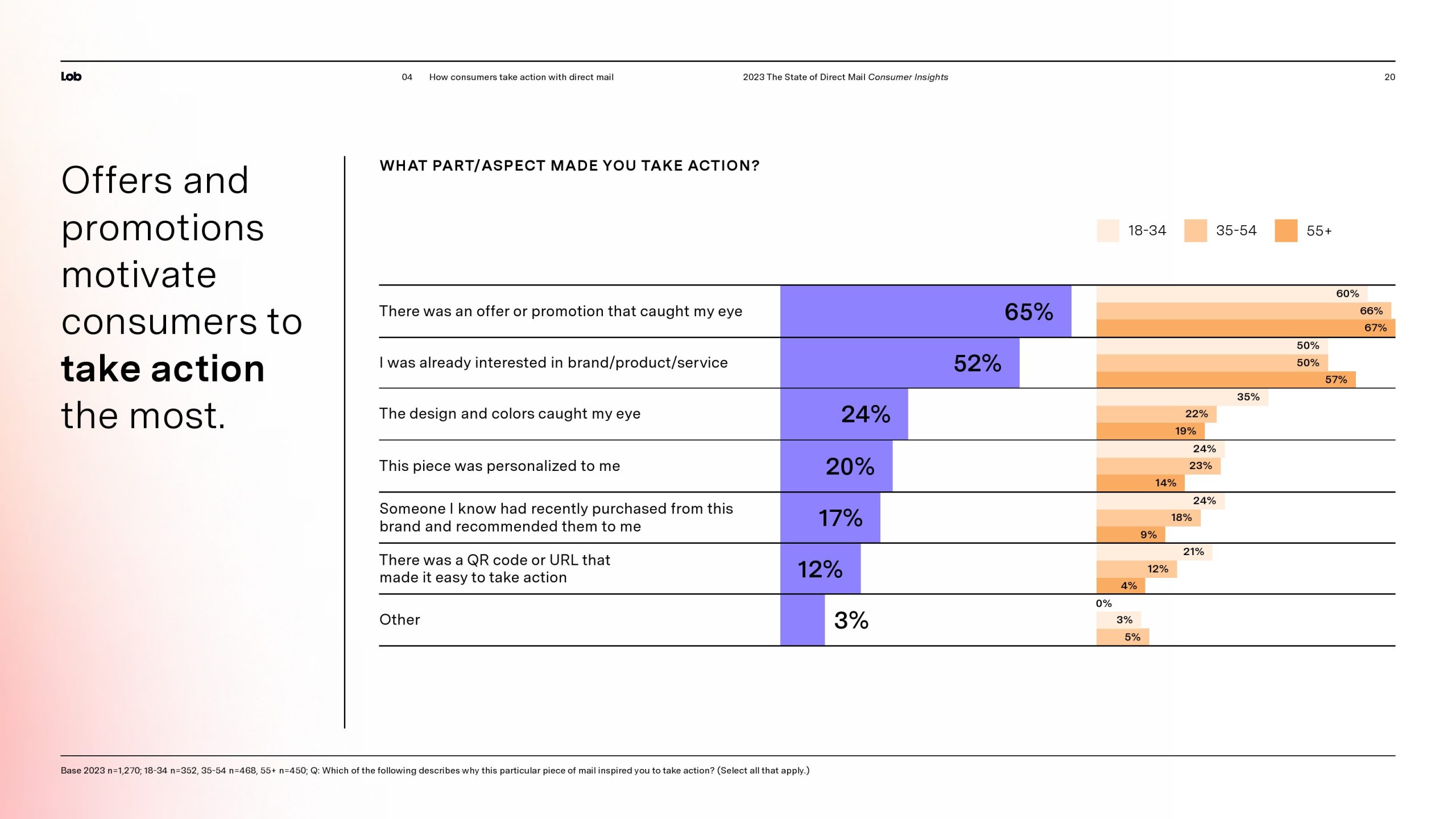 65%的受访者表示,工作邀请或晋升吸引了他们的注意力。优惠是让收件人打开和阅读直邮的关键。