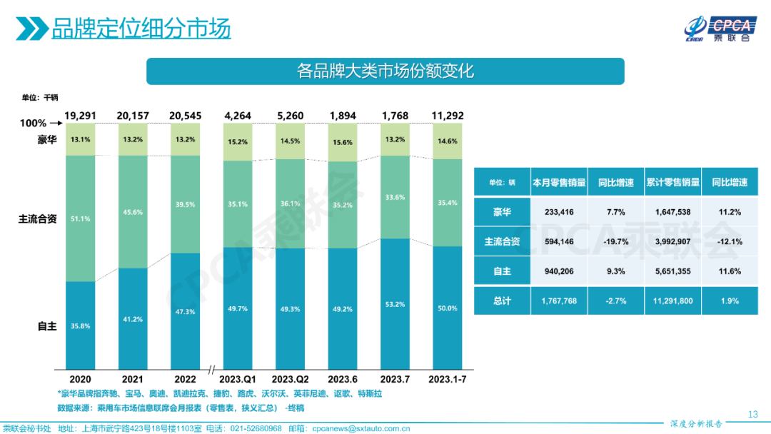 - 各价格段不同车型大类增速、销量和份额——2023年7月及累计