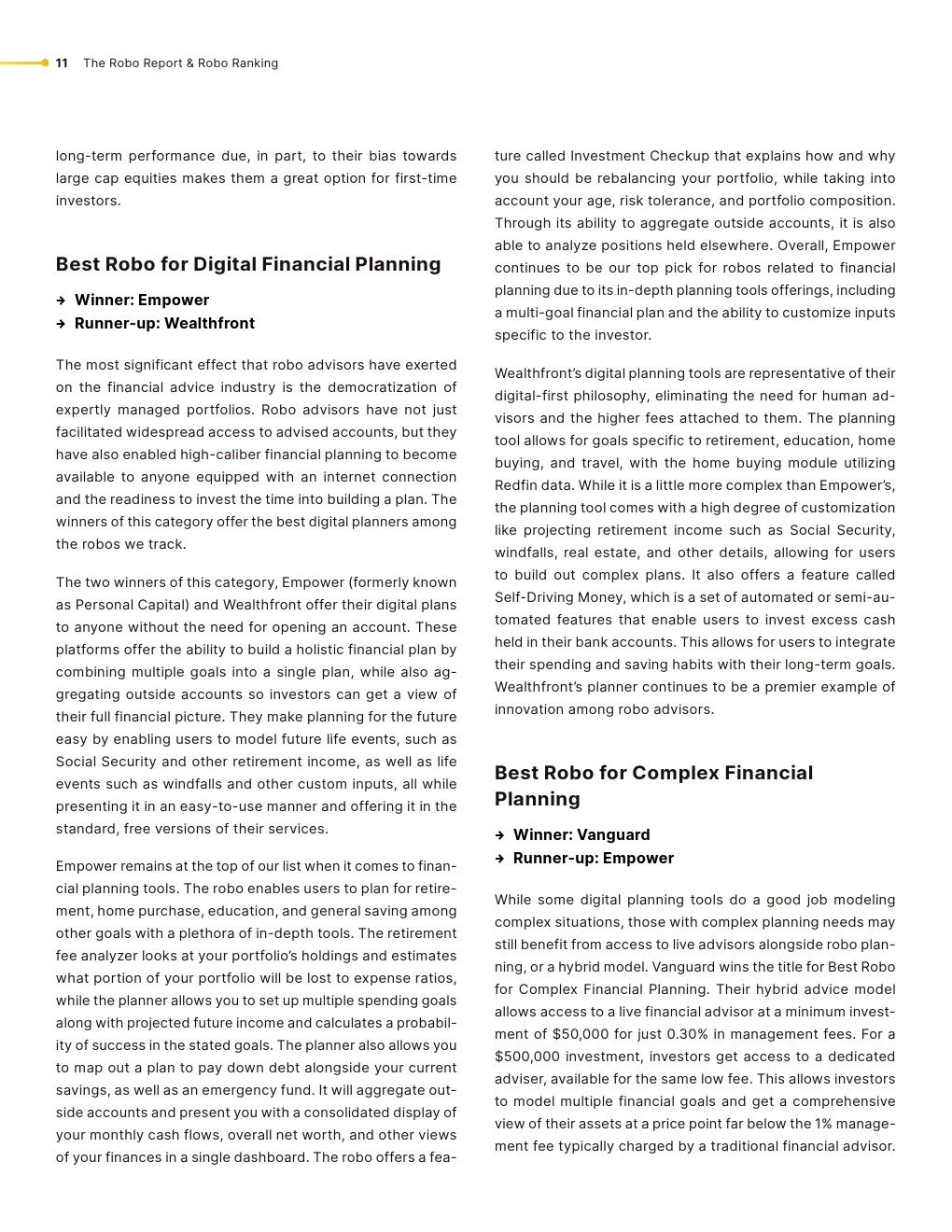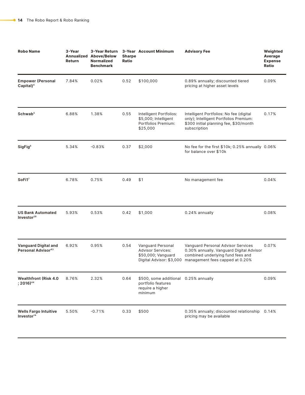 排名基于超过45个指标,包括实际表现数据。这一排名凸显了机器人顾问日益突出的地位,由于其可负担性和最低的投资要求,机器人顾问正变得越来越受欢迎。