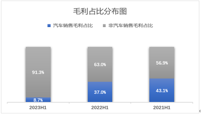 2023年上半年,和谐汽车在汽车销售上的毛利为0.51亿元,相较2022年同期减少77.3%;汽车销售毛利率为0.7%,相较2022年下降2.5个百分点。非汽车销售毛利润5.31亿元,相较2022年增长21.7%。