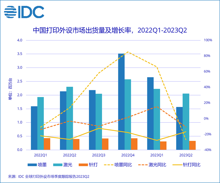 2023年上半年,随着全面放开,中国经济实现恢复性增长,但二季度经济恢复慢于一季度。打印机市场在经历2-3月的短暂回暖后,4月起市场需求急转直下,各大厂商面临着较大的经营压力。国际环境风云多变,为中国经济的恢复带来诸多挑战,但IDC认为,随着国家拉动经济措施的投放,下半年经济将持续修复,需求不足的情况会得到改善,并逐步恢复到常态化的发展。