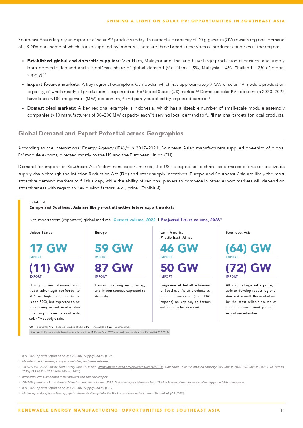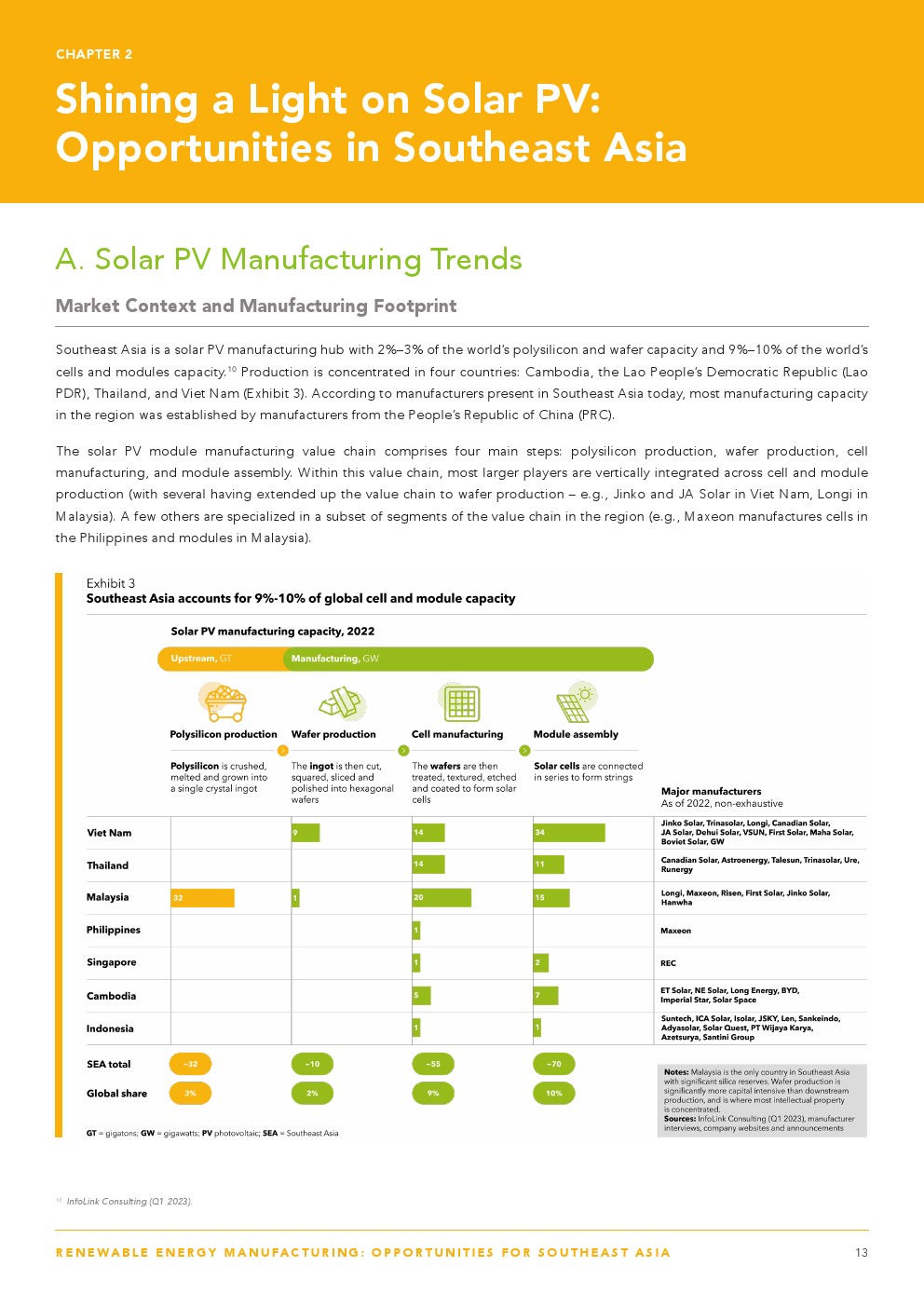 东南亚的太阳能光伏发电产能主要集中在电池(55吉瓦)和组件(70吉瓦),到2030年有望实现125至150吉瓦的组件产能。