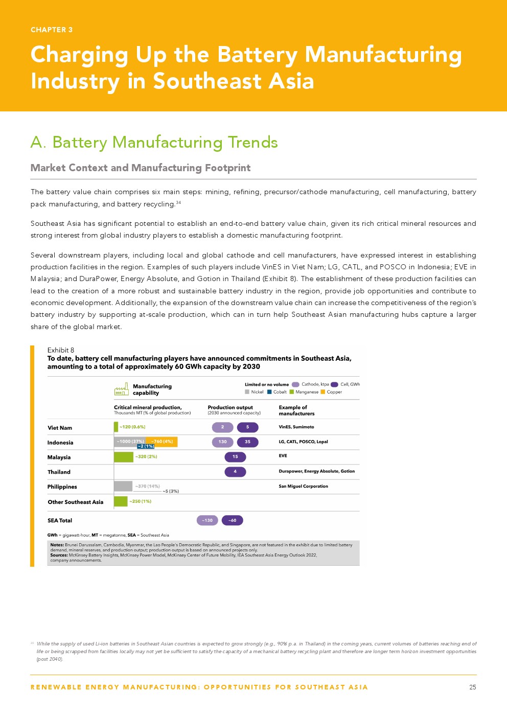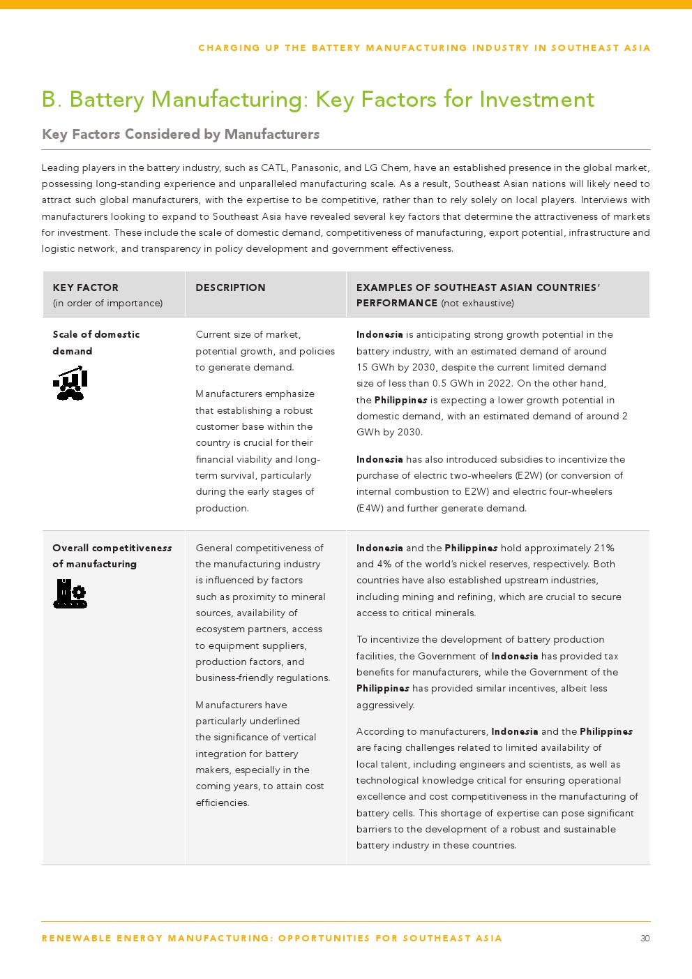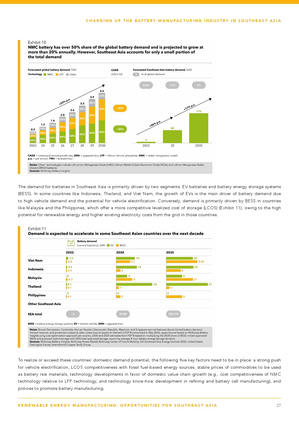 东南亚有潜力发展区域电池制造价值链,提高国家和区域需求,并成为区域和全球出口中心,到2030年生产140至180吉瓦时(GWh)的电池。