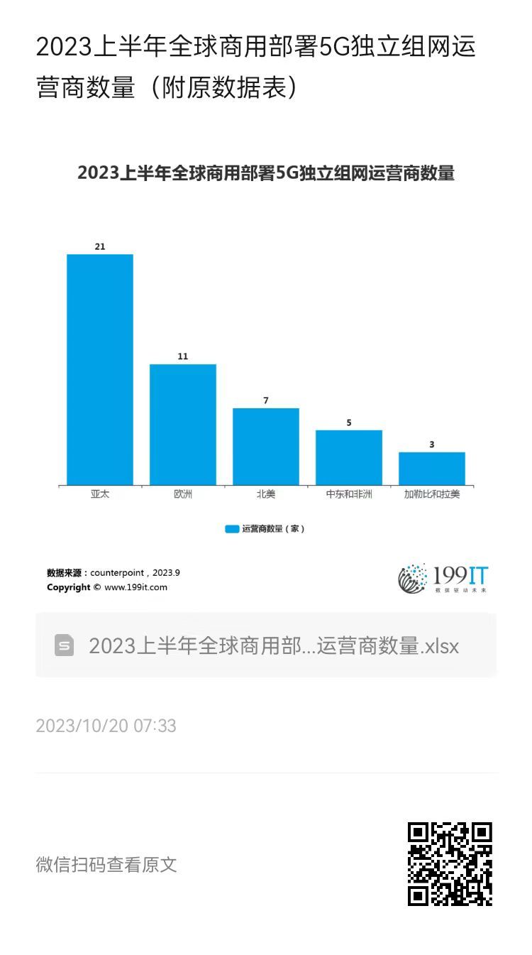 2023上半年全球商用部署5G独立组网运营商数量(附原数据表) ​​​