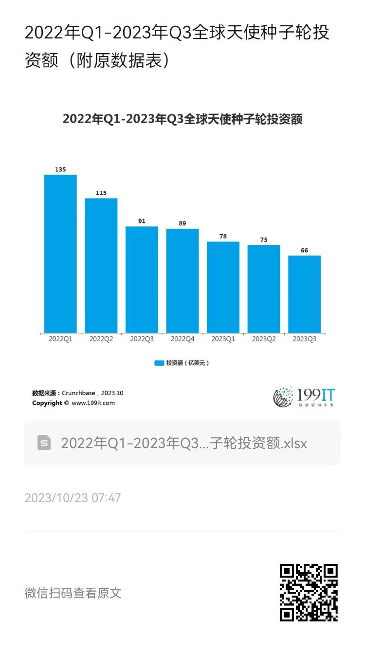 2022年Q1-2023年Q3全球天使种子轮投资额(附原数据表) ​​​