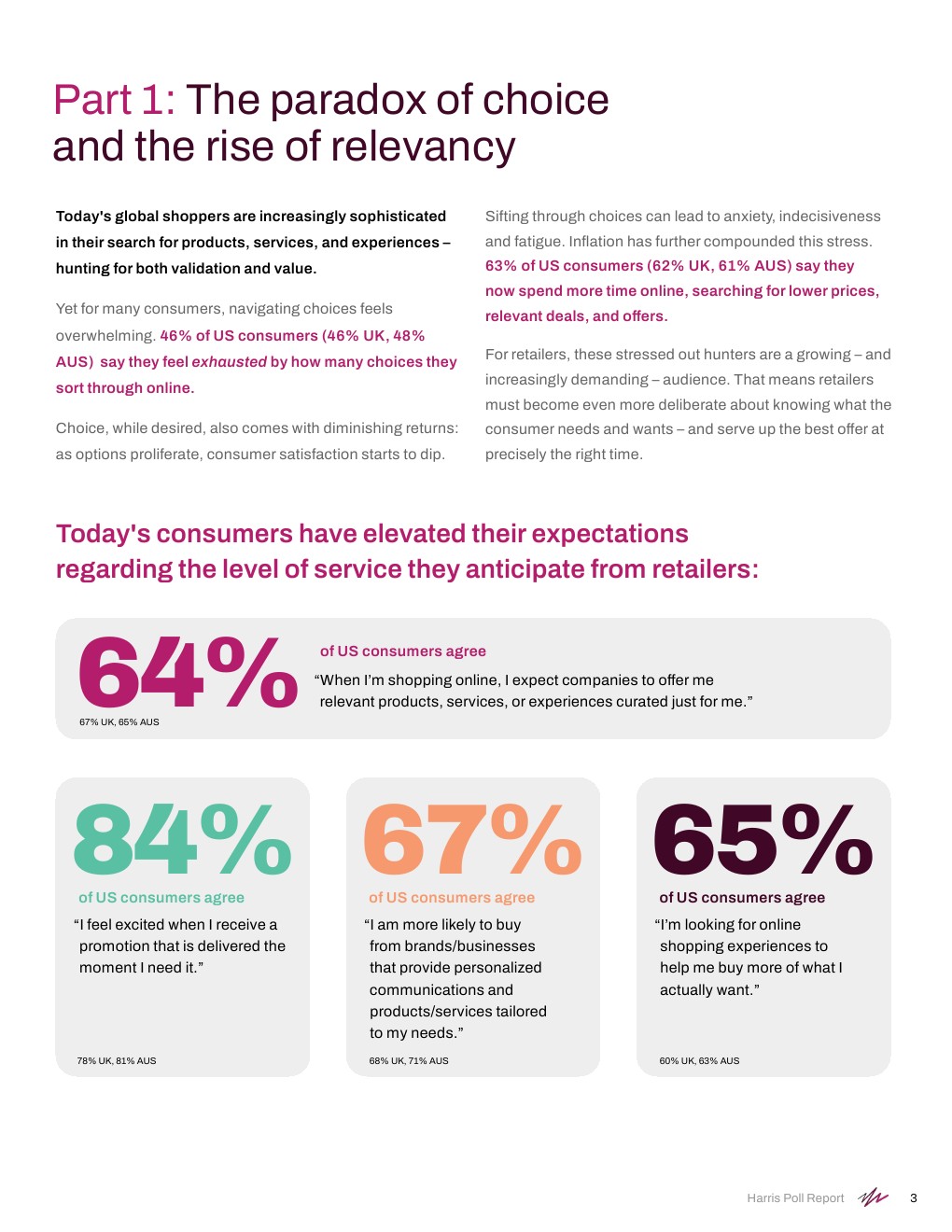 考虑到该报告的另一项结果,这是一个显著的好处——近一半的美国消费者对网上的选择太多感到筋疲力尽。此外,超过60%的美国受访者表示,他们现在花更多时间在网上搜索更低的价格、相关的交易和优惠。