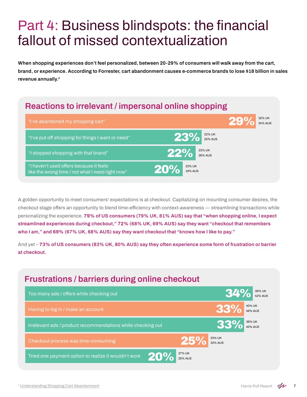 但是,各大品牌需要注意不要过度使用。因为,美国消费者表示,结账时太多广告/优惠是他们在线结账时最头疼的问题,结账时不相关的广告/产品推荐也是他们最头疼的问题。