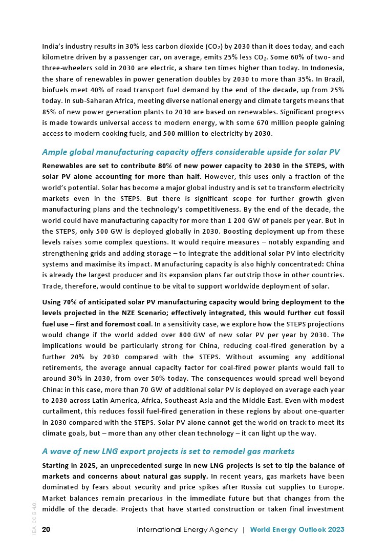 根据STEPS,到2030年可再生能源将贡献80%的新发电能力,其中仅太阳能光伏就占一半以上。