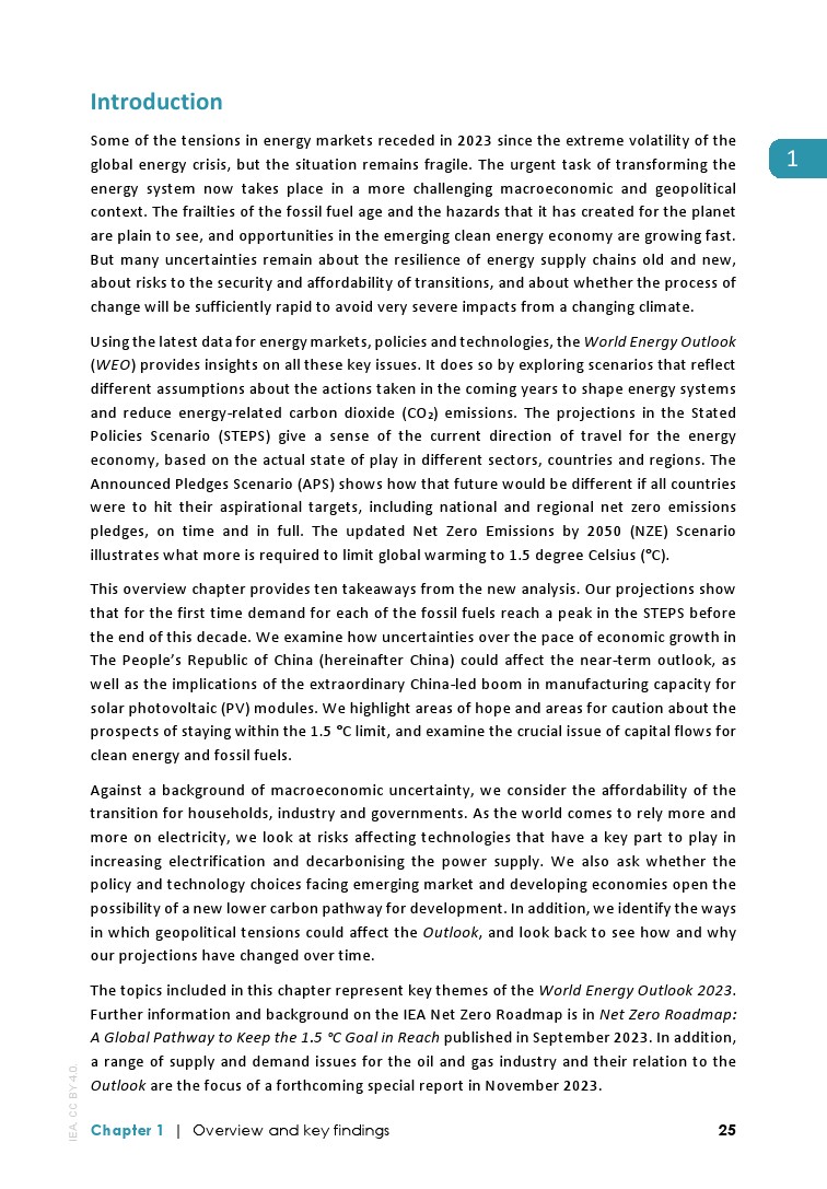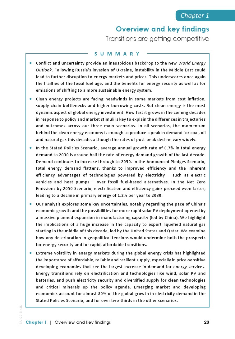 IEA发布了最新的“2023年全球能源展望”,主要发现包括: