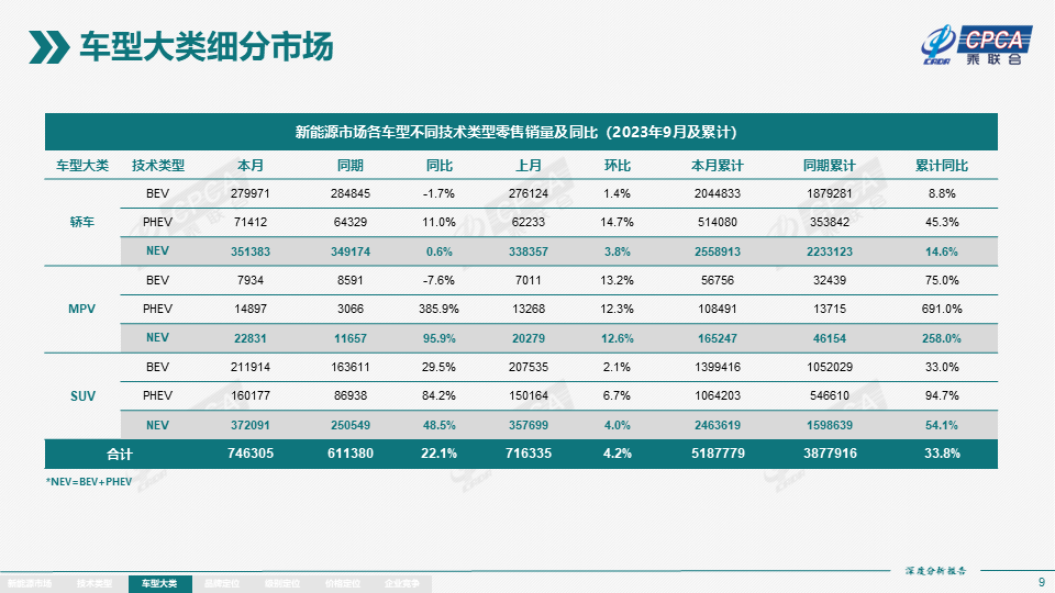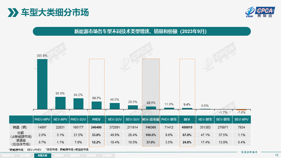 - 新能源市场(轿车、MPV、SUV):BEV+PHEV