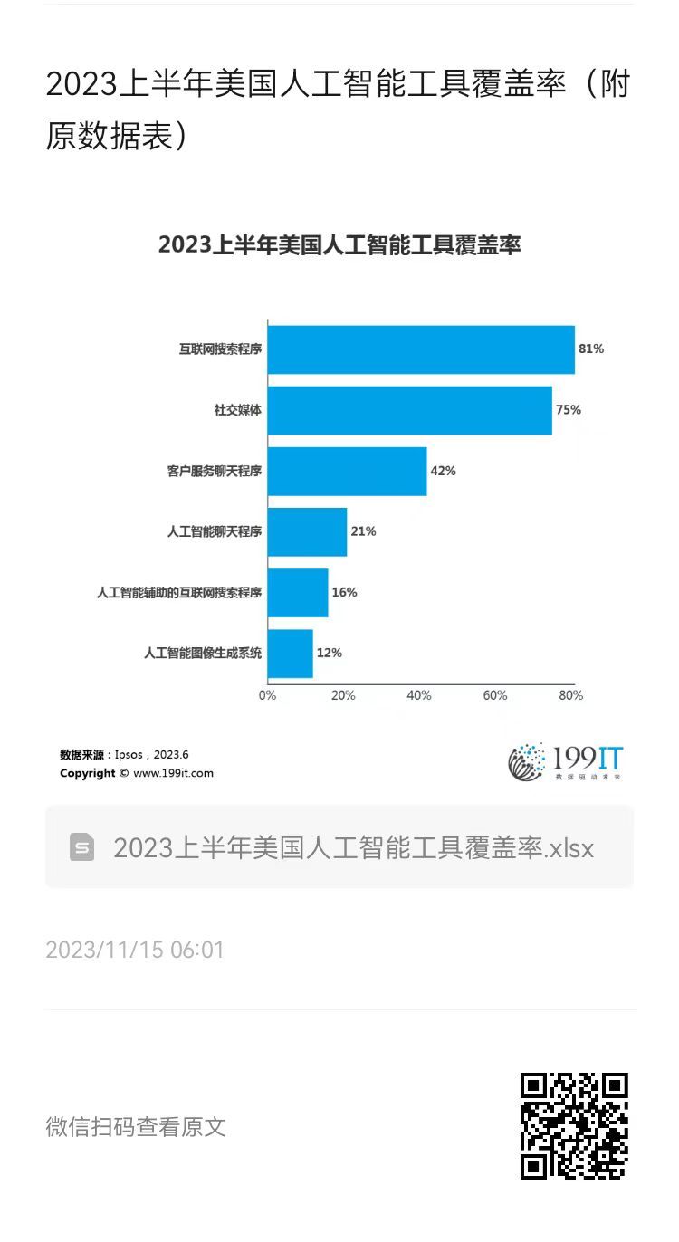 2023上半年美国人工智能工具覆盖率(附原数据表) ​​​