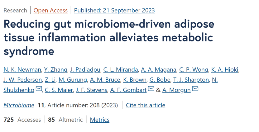 1、Newman, N.K., Zhang, Y., Padiadpu, J. et al. Reducing gut microbiome-driven adipose tissue inflammation alleviates metabolic syndrome. Microbiome 11, 208 (2023).
