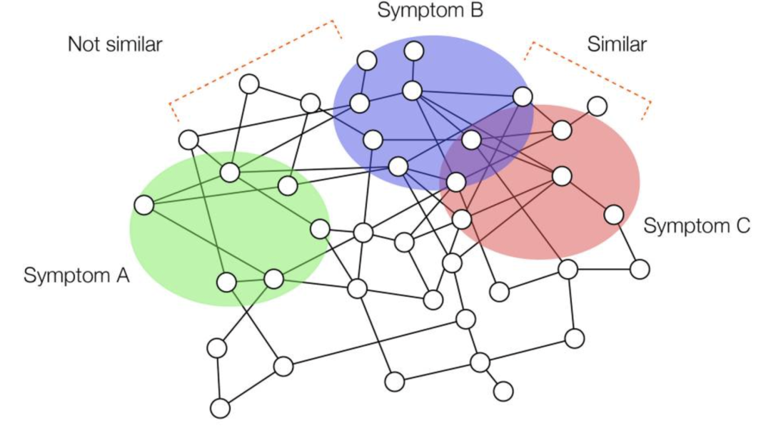 于是,研究者依靠症状-基因关联数据集确定了与各种症状相关的基因,并将这些基因映射到PPI中相对应的蛋白质上。