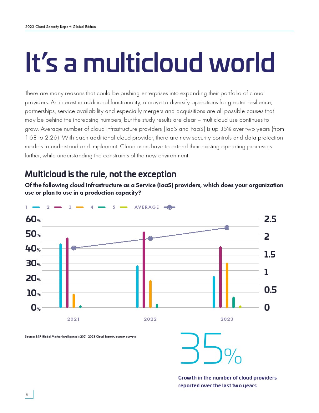 云基础设施提供商的平均数量远高于2家(2.3家)。今年超过3/4的受访者(79%)拥有不止一家云提供商。