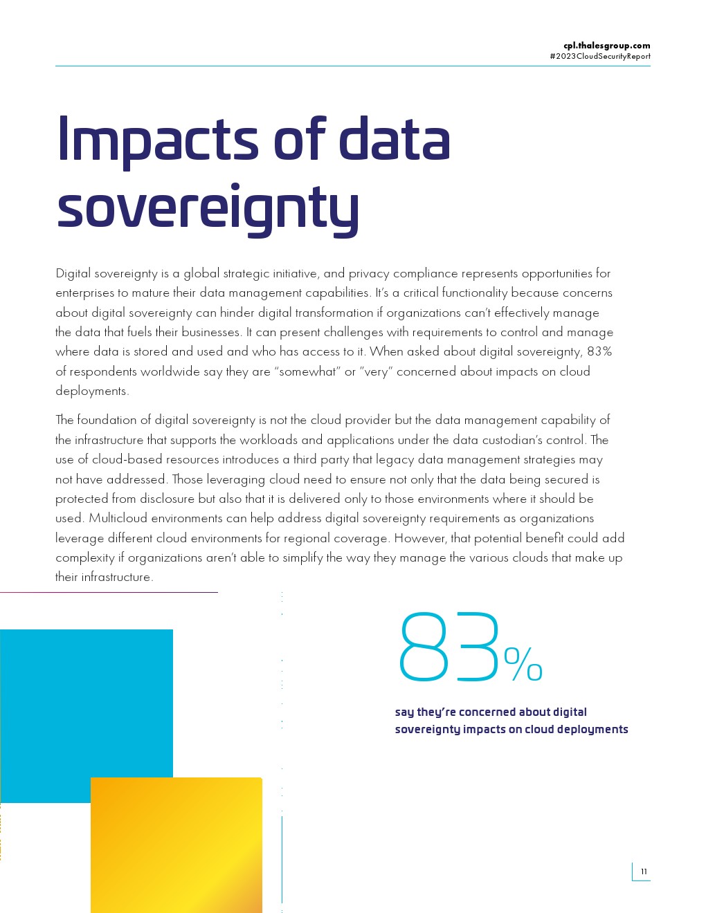 受访者表示,依赖于云提供商的加密密钥管理的使用率很高,同时对主权授权的担忧也越来越大。83%的受访者担心主权对云部署的影响。