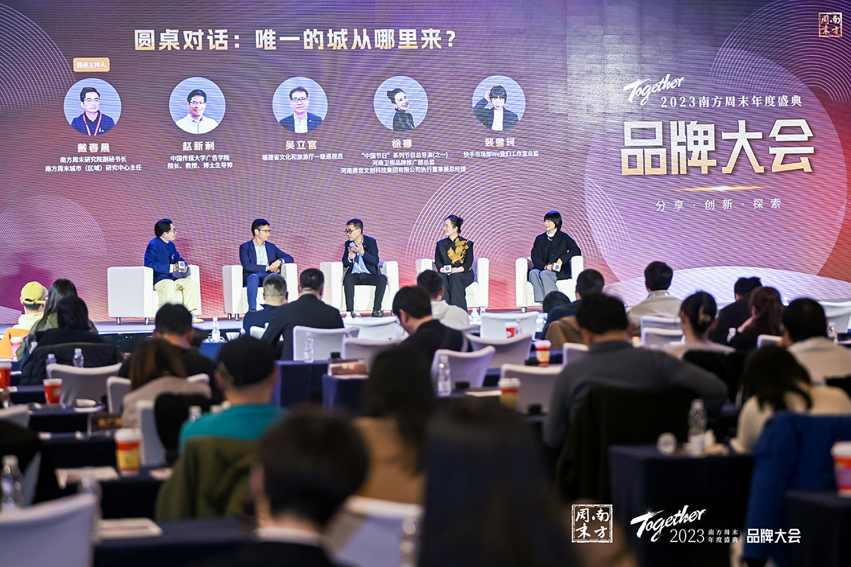而在圆桌对话中,吴立官、戴春晨与中国传媒大学广告学院院长、教授、博士生导师赵新利,“中国节日”系列节目总导演之一、河南卫视品牌推广部总监、河南唐宫文创科技集团有限公司执行董事兼总经理徐娜,快手市场部We我们工作室总监裴雪珂,共同探讨“唯一的城从哪里来”这一议题。