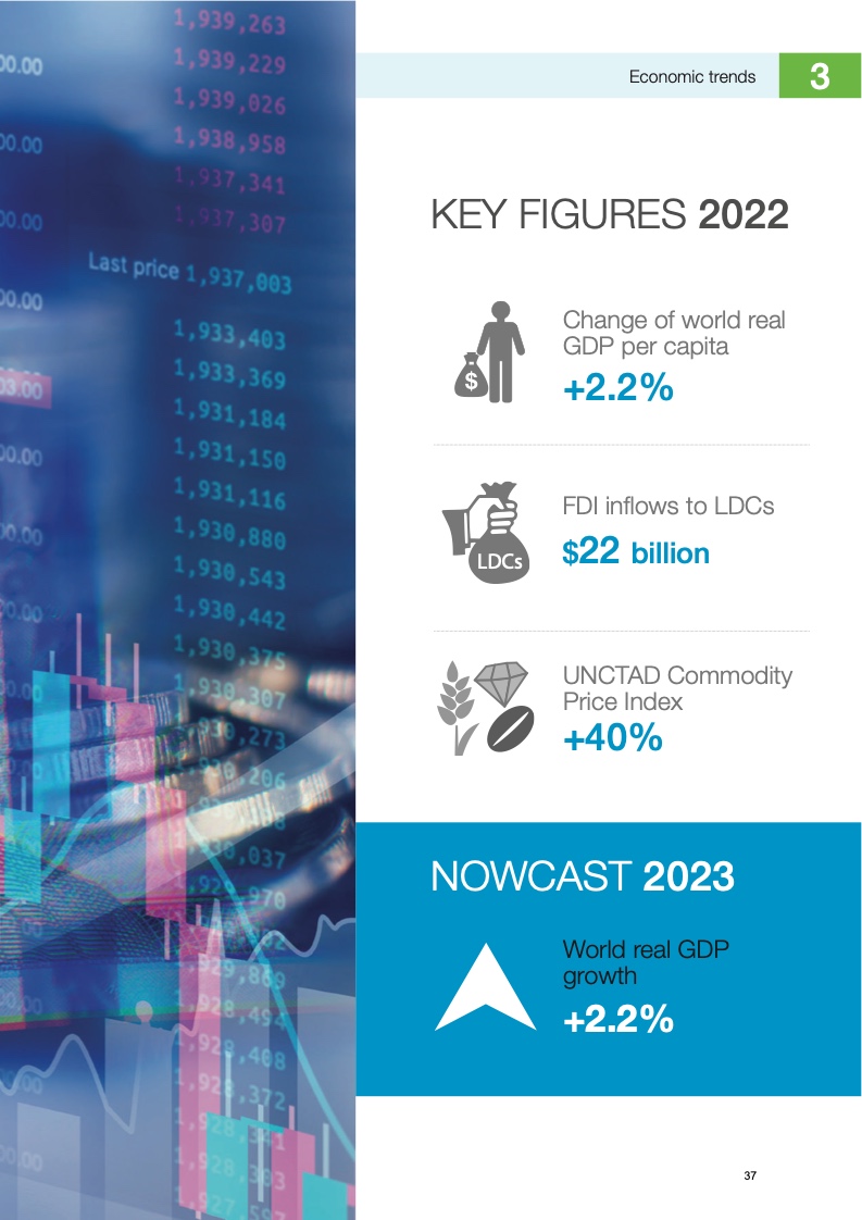 国内生产总值增长放缓:贸发会议预测,全球国内生产总值增长将从2022年的3.1%下降至2023年的2.2%。