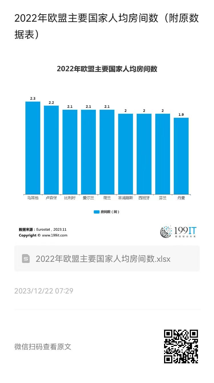 2022年欧盟主要国家人均房间数(附原数据表) ​​​