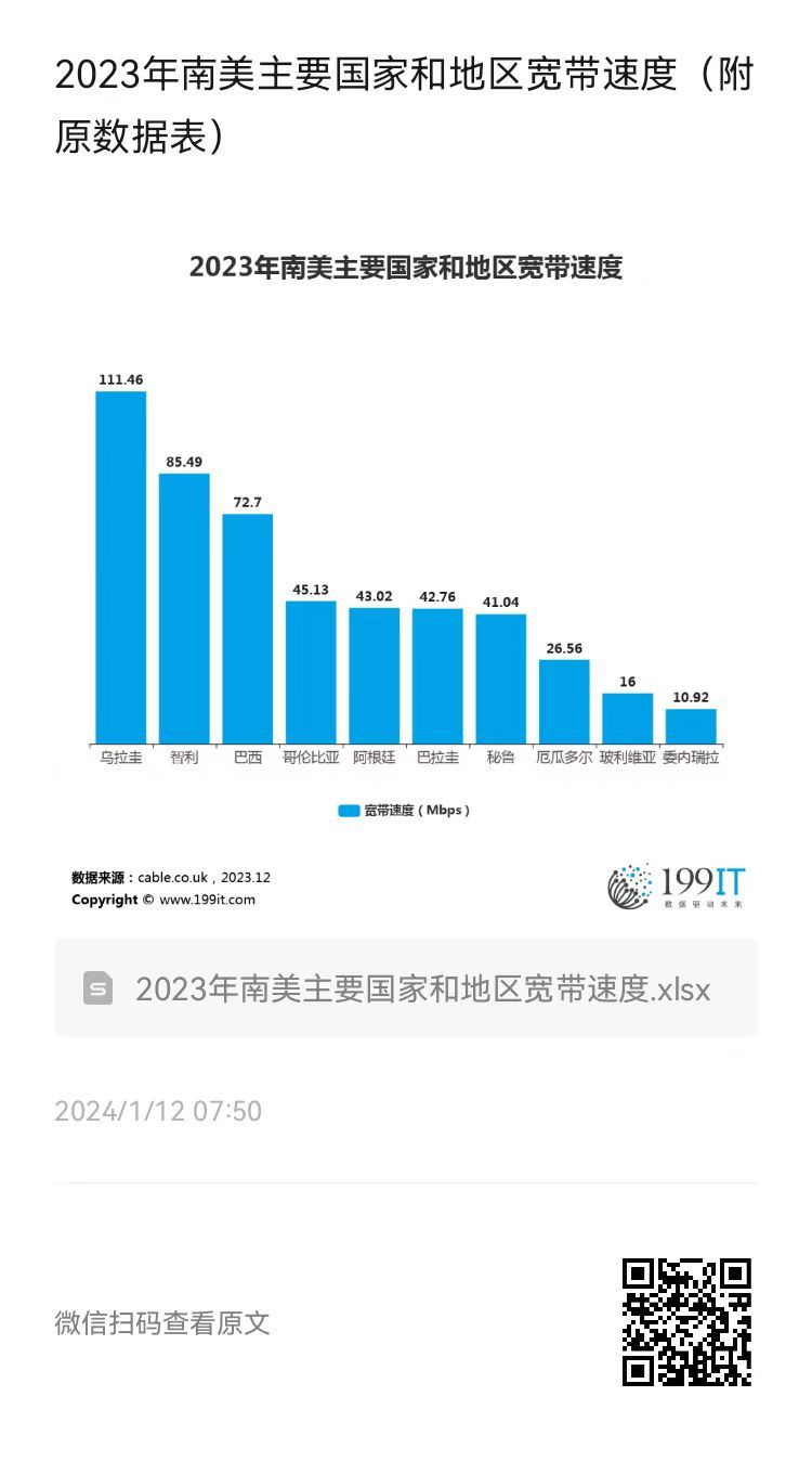2023年南美主要国家和地区宽带速度(附原数据表) ​​​