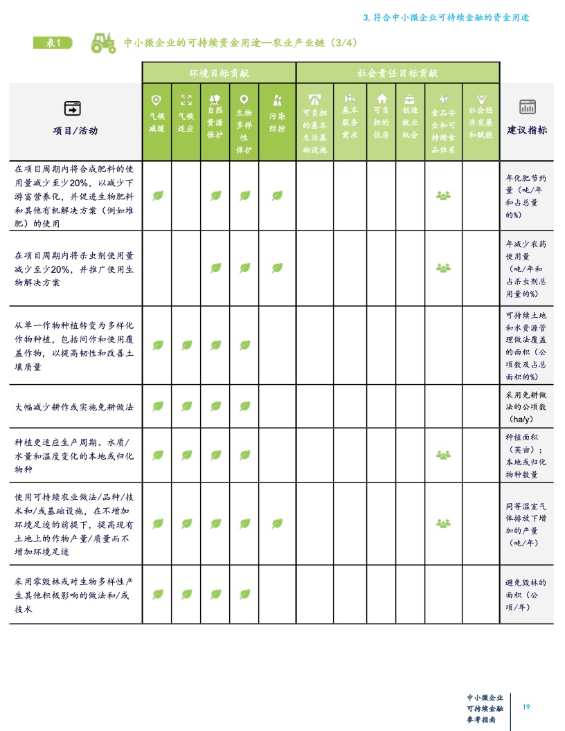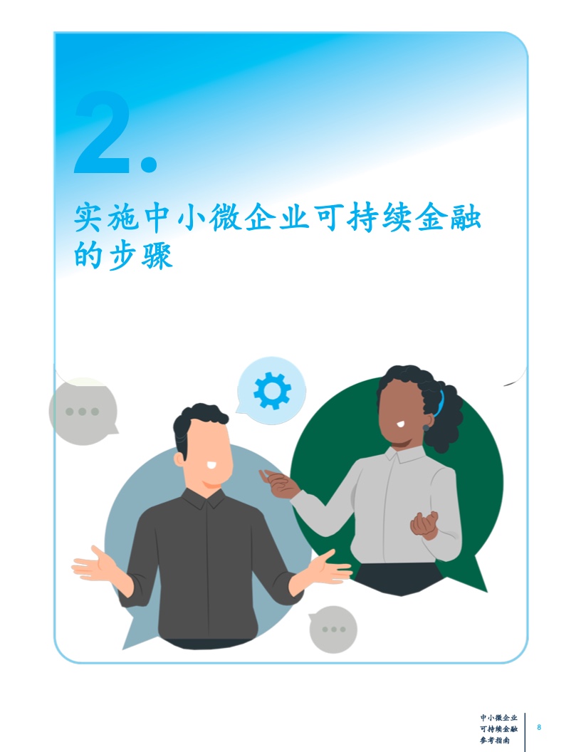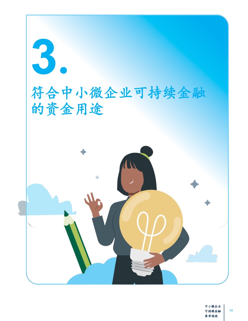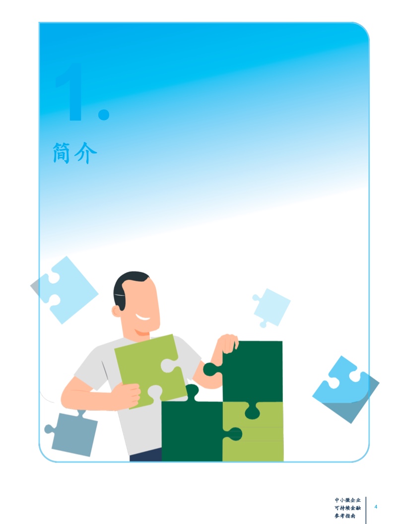 近年来,可持续金融业务发展迅速。尽管如此,当前市场仍缺乏适用于中小微企业的特定可持续金融指导。和大型企业的大额资本支出的项目融资需求相比,中小微企业的融资需求往往是小额的运营支出。