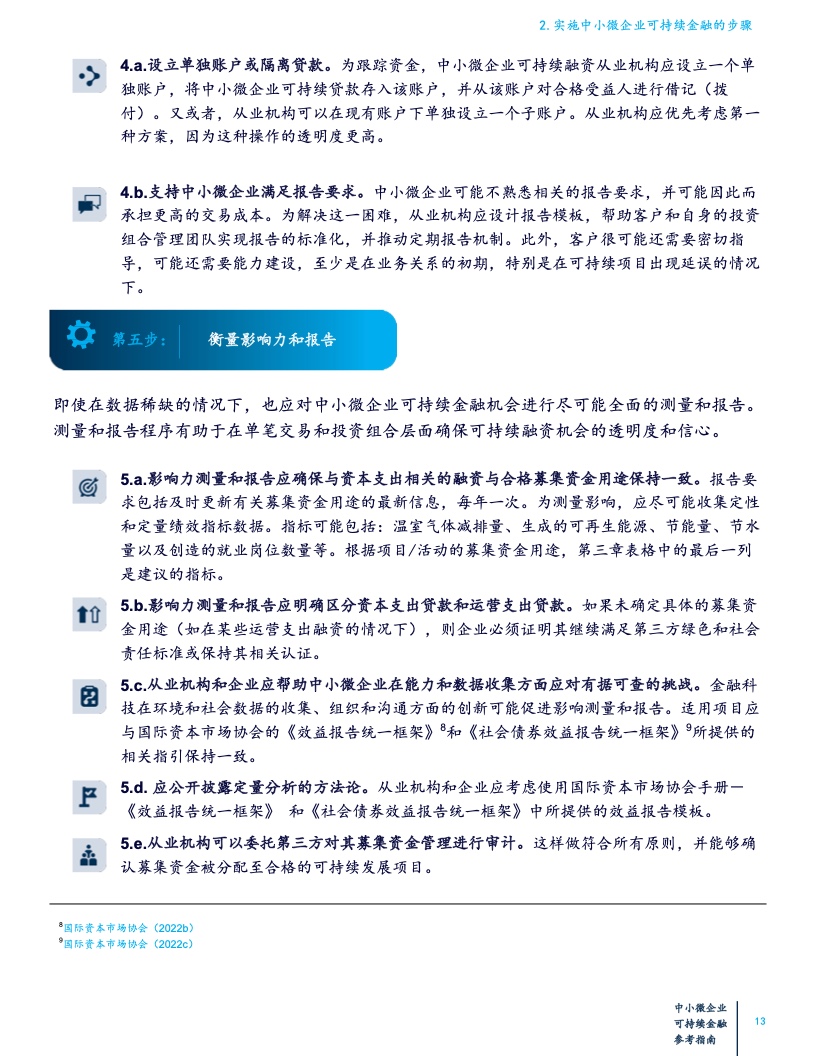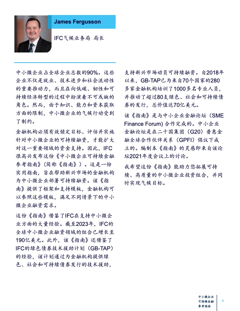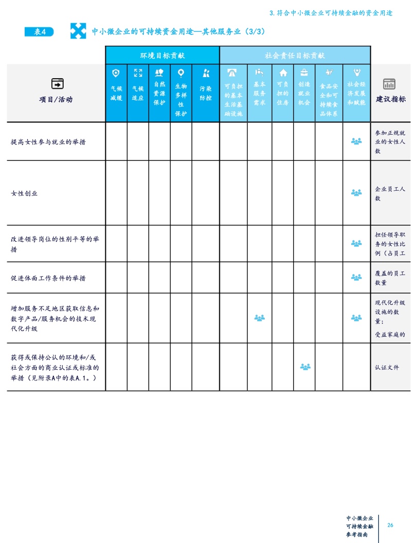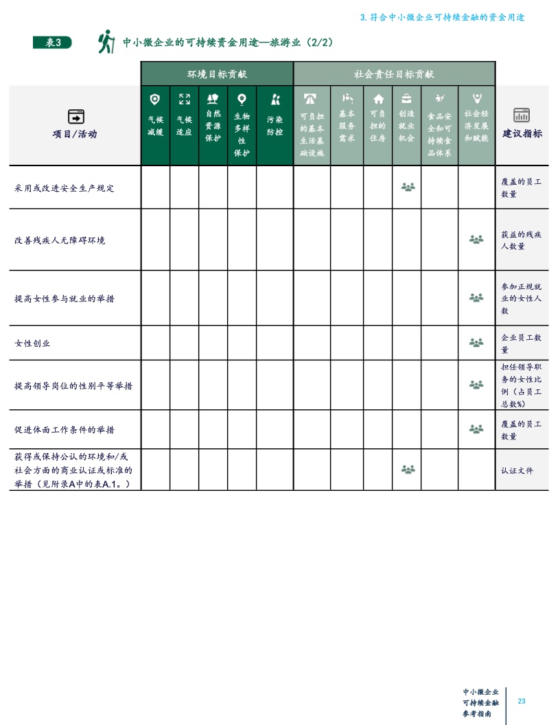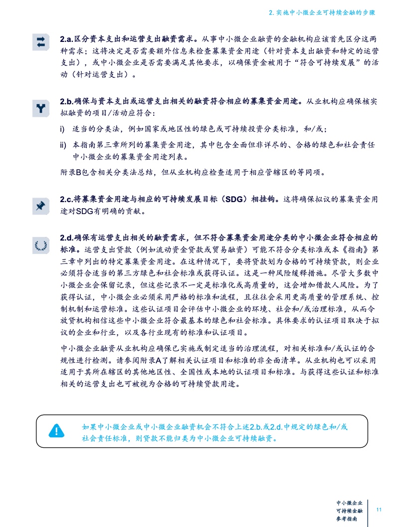 近年来,可持续金融业务发展迅速。尽管如此,当前市场仍缺乏适用于中小微企业的特定可持续金融指导。和大型企业的大额资本支出的项目融资需求相比,中小微企业的融资需求往往是小额的运营支出。