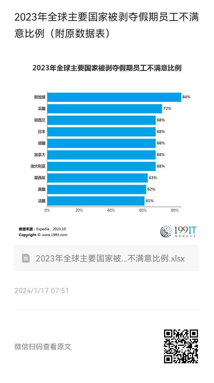 2023年全球主要国家被剥夺假期员工不满意比例(附原数据表) ​​​