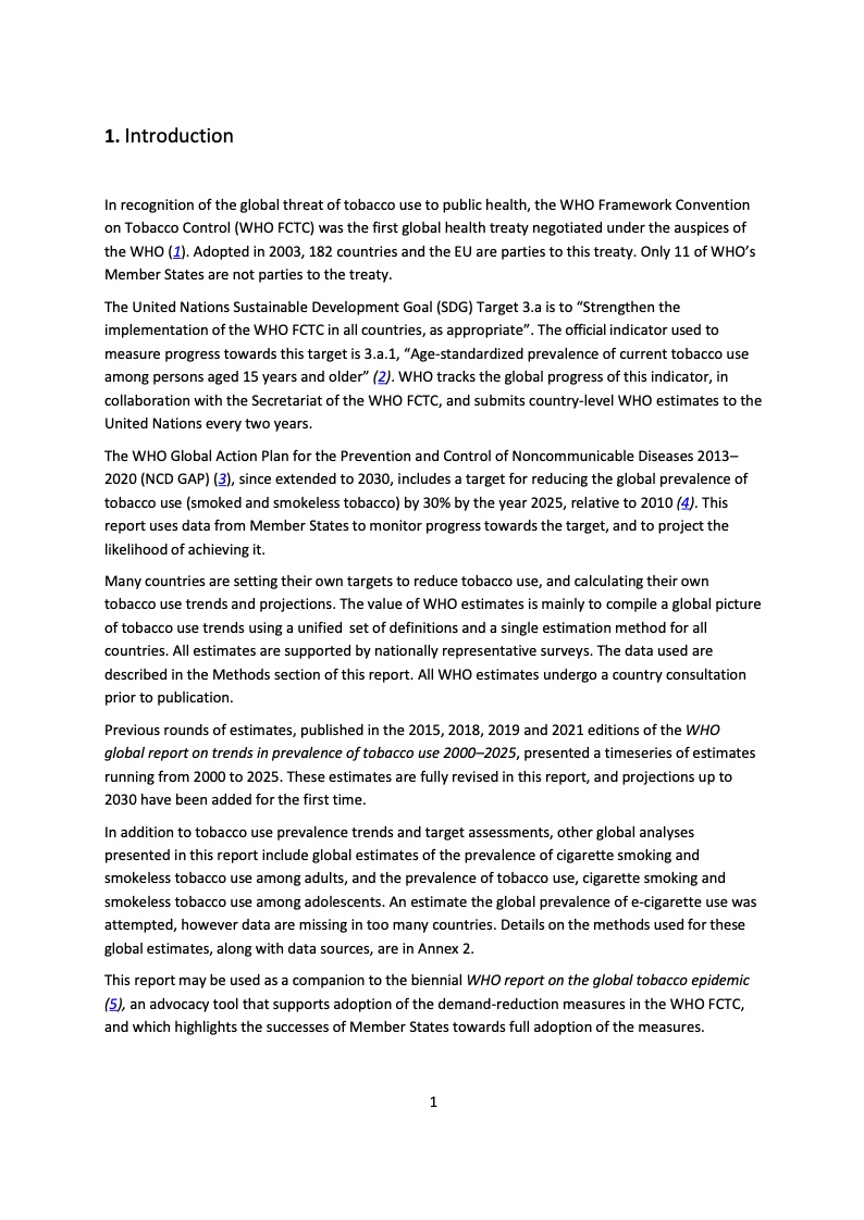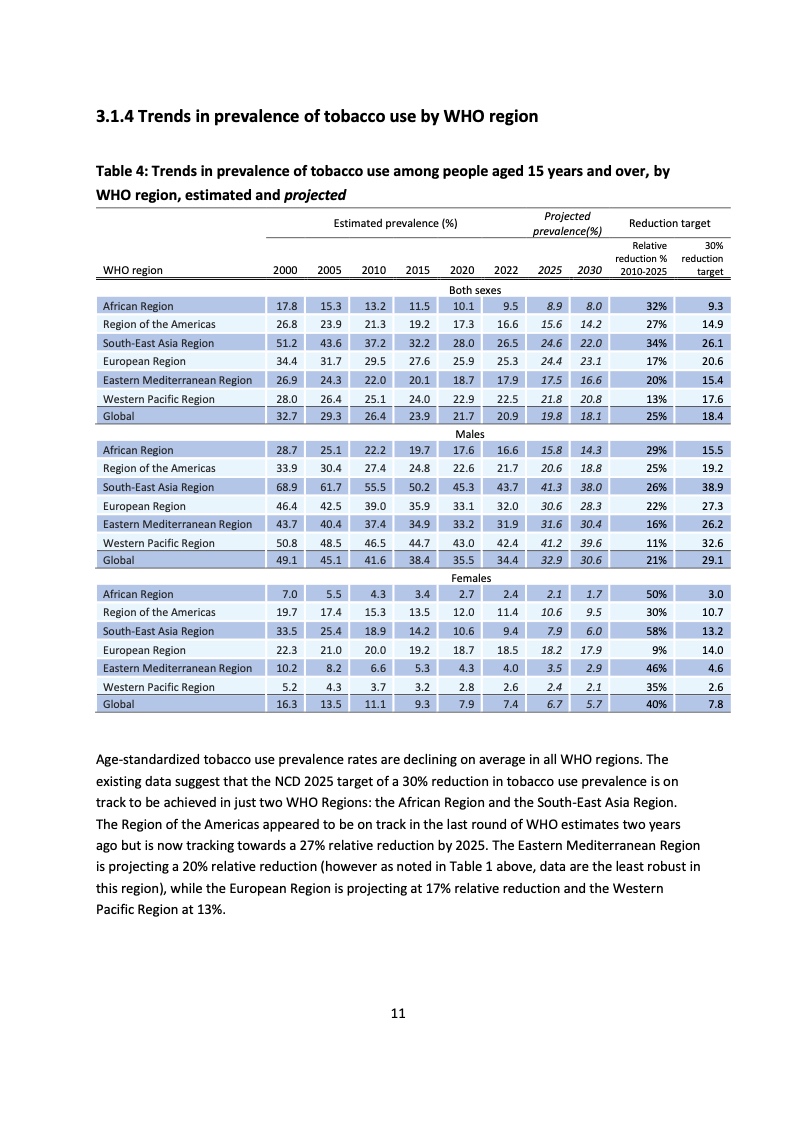 世卫组织表示,到2025年,全球烟草使用率预计将相比于2010年减少25%,但这一降幅仍未达到将烟草使用率减少30%的全球自愿目标。