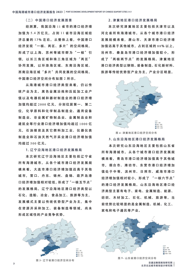 港口不仅是综合运输的枢纽,而且对于拉动区域经济增长发挥了重要的战略性引领带动作用。近年来,全球沿海国家和地区大力推进港口经济发展,全球工业的70%集中在沿海地区,全国一半以上GDP集中在我国东部,港口已经成为我国沿海地区经济发展的重要引擎。《报告》在国内外现有港口经济相关理论研究的基础上,结合发展实践,明确了港口经济的概念,并提出了利用投入产出模型测算港口经济增加值的方法。《报告》首次对全国59个海港城市港口经济增加值进行了全面测算,并从总量、产业类型、空间分布、贡献度等多个角度描绘出中国海港城市港口经济发展图景。结果显示,全国59个海港城市港口经济贡献度的平均值已经达到13%左右,最高达到了34%,港口经济对于拉动海港城市的经济增长发挥了重要作用,但是不同城市间仍存在较大差异。