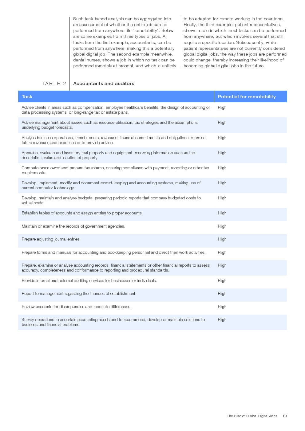 根据国际劳工组织的就业统计数据,全球共有5400种工作类型,其中有218种有助于成为全球数字化工作。全球8.2亿工人中有7300万从事这些工作。其中不到40%的人从事会计、法律和财务工作,而客户服务代表、营销、广告和传播专业人员以及IT专业人员各占总工作岗位的10%左右。