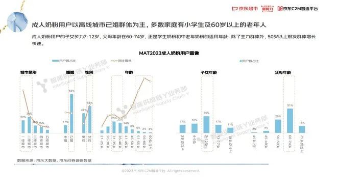《报告》显示:受人口结构变化及乳制品摄入意识增强影响,成人奶粉市场需求增加,2022年预计达156亿,京东销售额数倍领先行业;目前,随着更多新产品入局,成人奶粉竞争呈现分散趋势,高线城市已婚群体为消费主力。